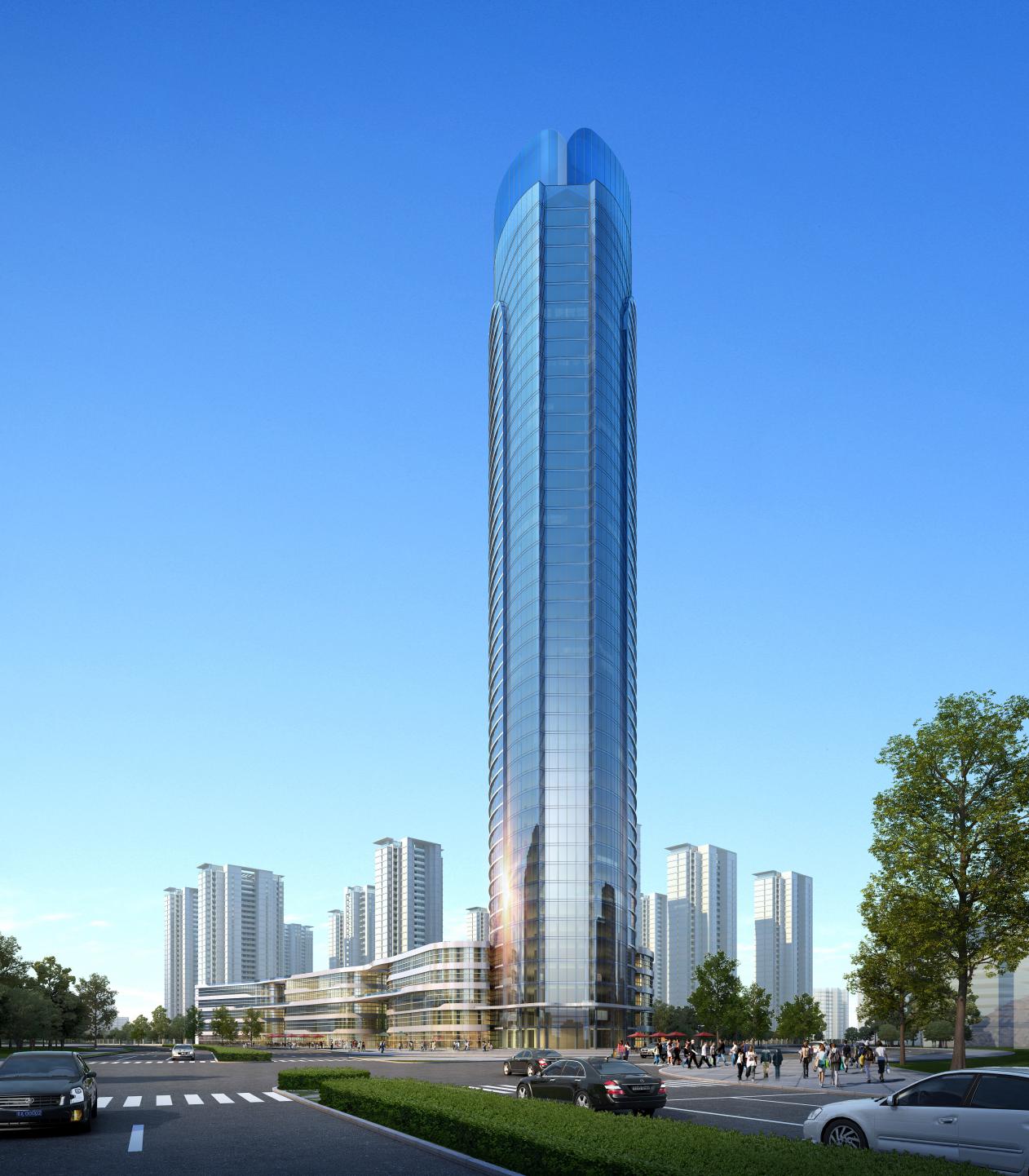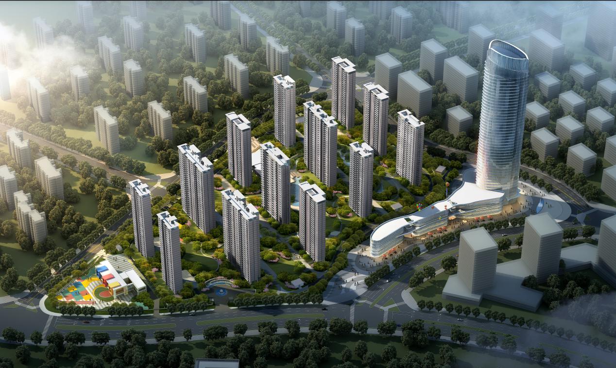 項(xiàng)目占地面積約209畝,總建筑面積約40萬(wàn)方,容積率約2.8,綠化率達(dá)30%。本項(xiàng)目建筑設(shè)計(jì)遵循“以山水之蘊(yùn),天地之氣充盈其間,盡顯人文內(nèi)涵”的原則,整個(gè)項(xiàng)目由13棟住宅樓和1棟199米超高層寫字樓(金融中心)和2棟智創(chuàng)中心,1棟鄰里中心,1個(gè)9班雙語(yǔ)幼兒園組成。