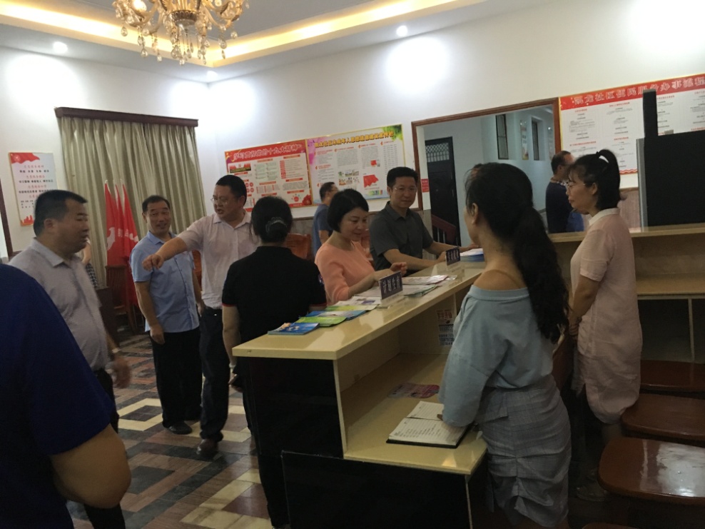 區(qū)領(lǐng)導向社區(qū)工作人員了解社區(qū)開展創(chuàng)城情況